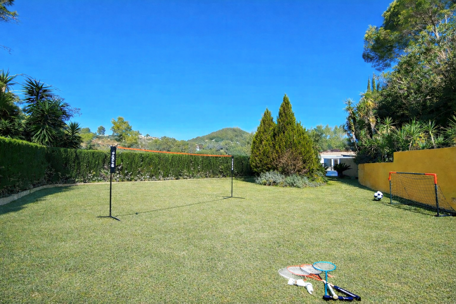The villa offers a great range of activities inside and out of the gates. There’s the pool table in the summer room and a huge garden with lush green irrigated grass, perfect for badminton, football and games for the kids. As mentioned, there's also table football, table tennis and four mountain bikes available for guests to use.